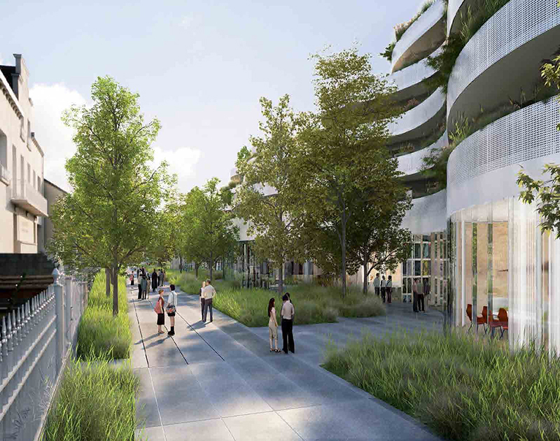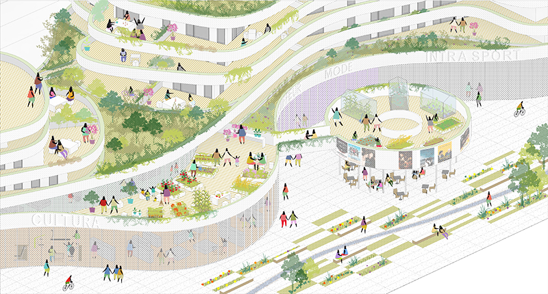 Le projet conjugue une densité en adéquation avec le dynamisme de ce centre urbain métropolitain, tout en concourant à la réalisation d’un centre-ville plus vert, intégrant la présence forte du végétal dès la genèse du projet. Proposition pour une urbanité paysagère, pour passer de la ville au parc.