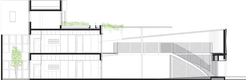 Le projet entremêle les espaces extérieurs et les espaces intérieurs, organise autour d’une promenade les 2 niveaux dans une boucle de petits sentiers et de terrasses, imbriquant espaces plantés et aires minérales.