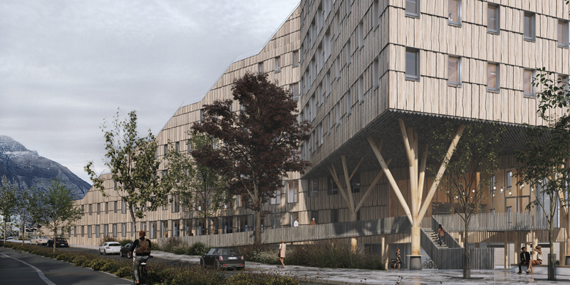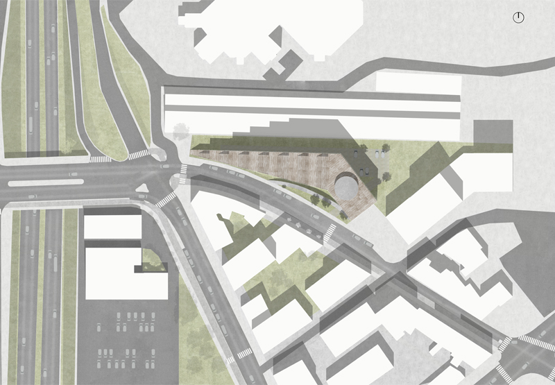We organize the main entrance near the square in the east towards Grenoble city center. The tertiary part of the structure is levitating at a height of approximately 3 meters. A volume sways coming to redefine a tiling and mark the main entrance to the building with a large awning.