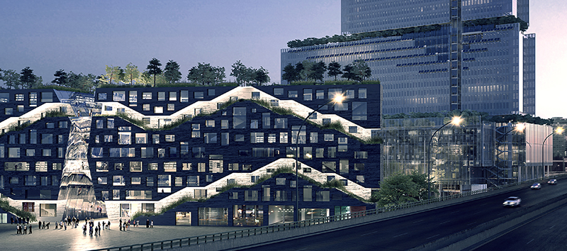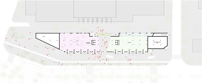 Paradoxe urbain, nous affirmons autonomie, insularité et mise à distance comme des caractéristiques à même de constituer une polarité et une attractivité suffisamment fortes pour annuler l’idée d’éloignement. Le vide, la lisibilité, le paysage ouvert qui caractérisent le site sont ici un parc urbain, un vide qualifié, dans lequel nous disposons des objets, masse verticale, archipel de pains de sucre qui viennent saturer de leur présence la vacuité alentour. Dans un environnement linéaire et peu dense, nous affirmons la présence de la masse, de la densité, de la force d’une envie de participer à un morceau de ville durable, pérenne, à forte inertie.