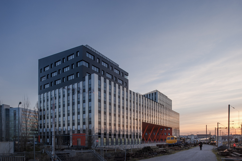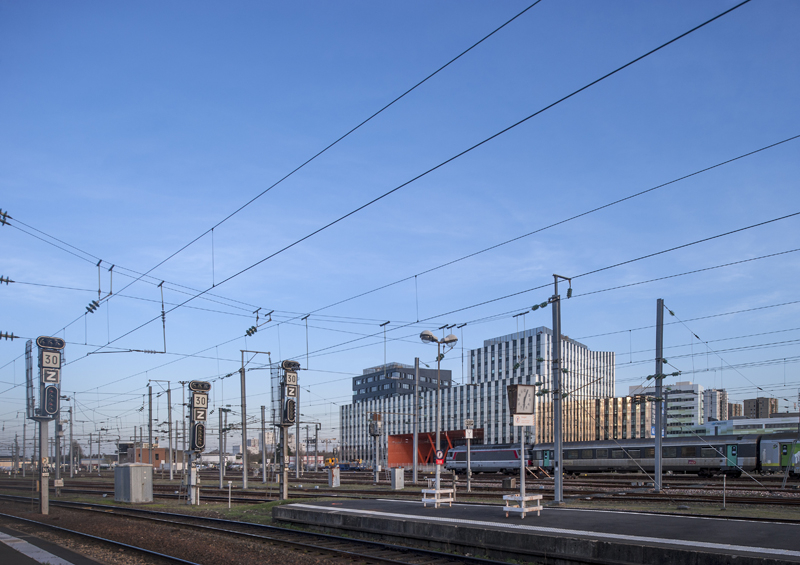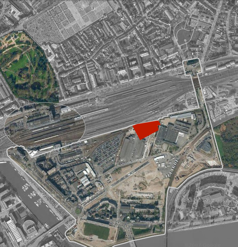 Caractérisée par sa situation limitrophe entre le réseau ferré associé à la gare et le nouveau quartier d’EuroNantes, la parcelle bénéficie sur le vaste paysage dégagé résultant de l’emprise ferroviaire, de vues et perspectives sur les points structurants du paysage Nantais : la manu, la cathédrale Saint-Pierre, la tour de Bretagne et notre quartier. Il préexiste donc une mise en relation de différents paysages qui permet de se repérer et de comprendre la ville, mise en relation que le projet doit conforter. Il y a aussi cette idée d’appartenance à une identité commune qu’est la ville de Nantes, les quartiers nouveaux étant appelés à être constitutifs du centre-ville.