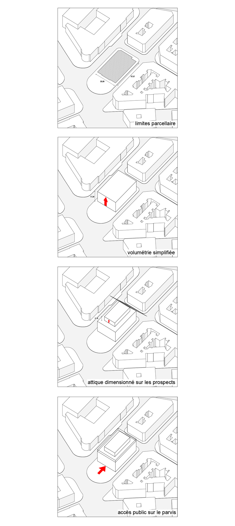 C’est à partir d’une architecture, d’un bâtiment aux qualités indéniables que nous avons élaboré notre projet. La position urbaine singulière d’objet architectural, autonome, tout à la fois parcelle et îlot confère au bâtiment un statut singulier, un statut de bâtiment public avec une forte présence et une lecture évidente.
