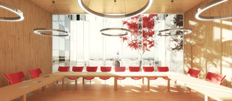 Notre proposition pour le futur siège de la Caisse d’Epargne Aquitaine Poitou-Charentes s’organise autour de trois strates totalisant 8 niveaux.